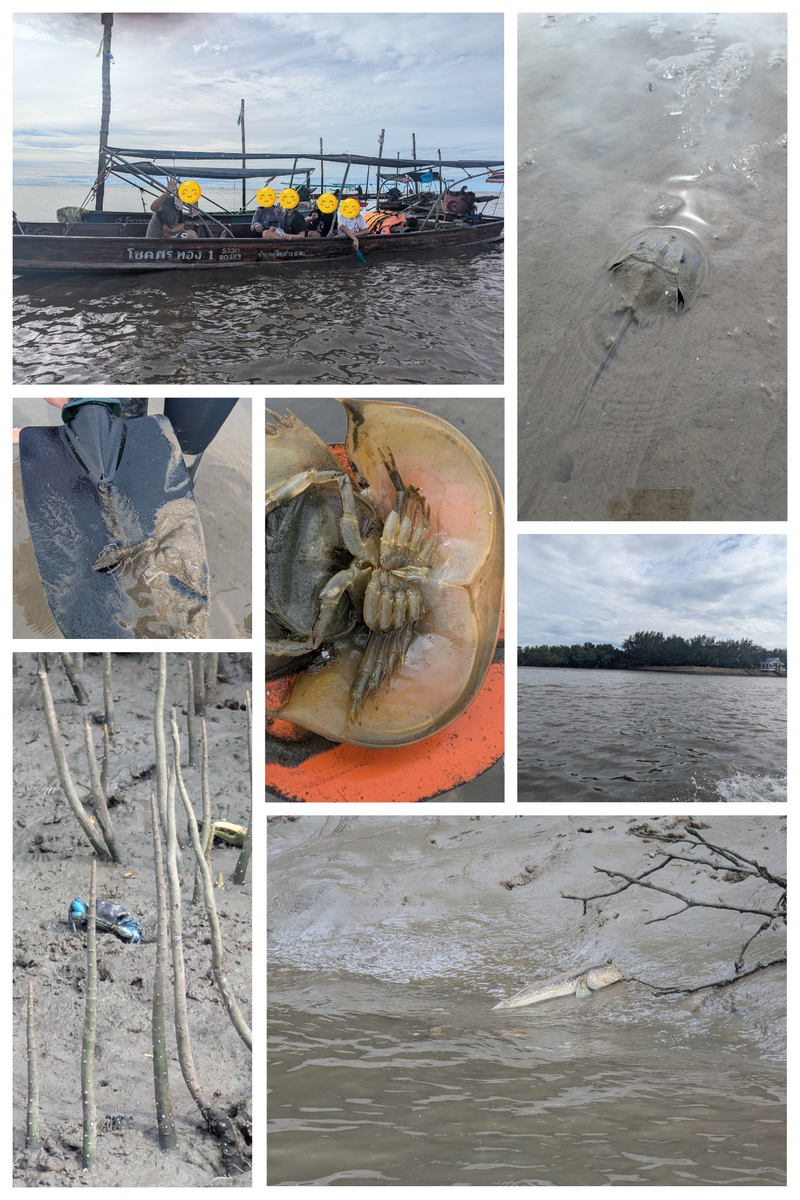 ここではハマグリ(タイ語名:ホイタラップ)やマテガイ(タイ語名:ホイロート)、を採ります。運が良ければ、生きたカブトガニ(タイ語名:メーンダータレー)も見つけることができます。